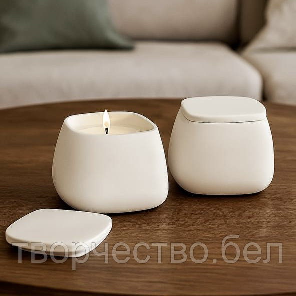 Подсвечник из гипса с крышкой, 80 мл Белый
